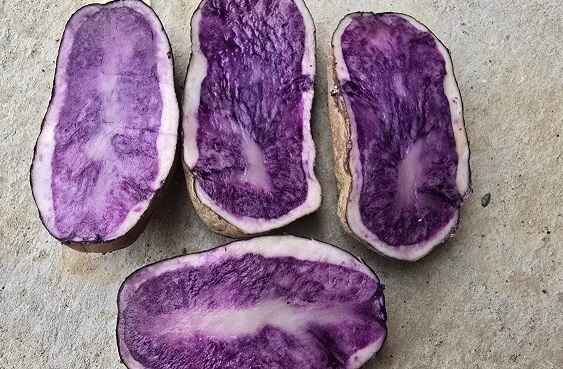 LEKOVITOST:Zpog viskogo sadržaja antioksidansa ( antocijanima ) veoma dobro i blagotvorno deluje na organizam i na rad imunog sistema,takode sadrži citav arsenal vitamina i minerala koji odlicno pogoduju organizmu.Takode sadrži vitamine koji su retki u mnogim namirnicama ili ih malo ima.Tako da s ovaj krompir smatra lekovitim,a u Kineskoj narodnoj medicini je nezaobilazan.Takode od njega može da se pravi i sok.