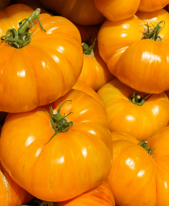 Bukvalno kao sa fotografiej sa vagom. Veoma je rodan i otporan na bolesti. Plod dostiže veličinu i do 1kg, prosek 300 gr. Specifičnog je ukusa, ima blagi voćni ukus i veoma je sladak uz dobar balans kiseline. Kad je potpuno zreo plod ima bledo žutu, skoro belu boju. Sok i sos od njega su neobične žuto bele boje. Vrlo ukusna sorta, danas jako retka. Prinos je fenomenalan uz dobar uzgoj i optimalnu negu i do 10 kg po biljci. Inače vrlo stara sorta kod nas skoro nepoznata.